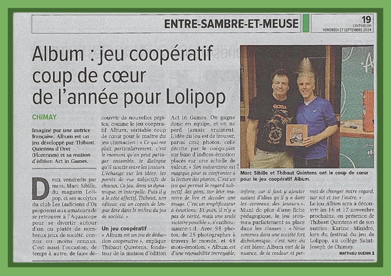 Album : un jeu édité par un Oretois